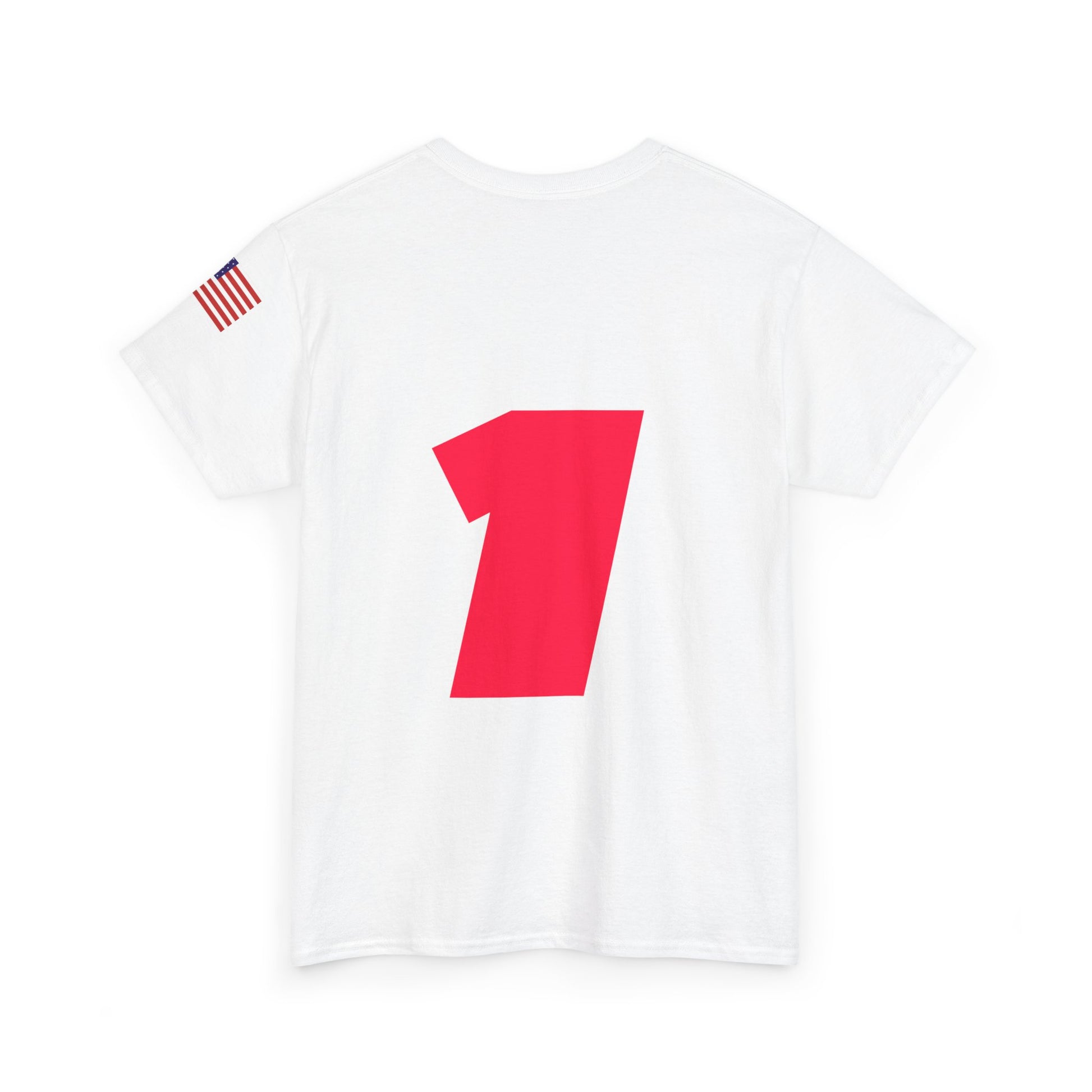 Custom T-Shirt with Red Bull Racing scheme featuring your name, last name, favorite number, and country flag. Perfect for race fans and enthusiasts looking to show off their unique style. Ideal for sports events, casual outings, and gift-giving occasions like birthdays or holidays.