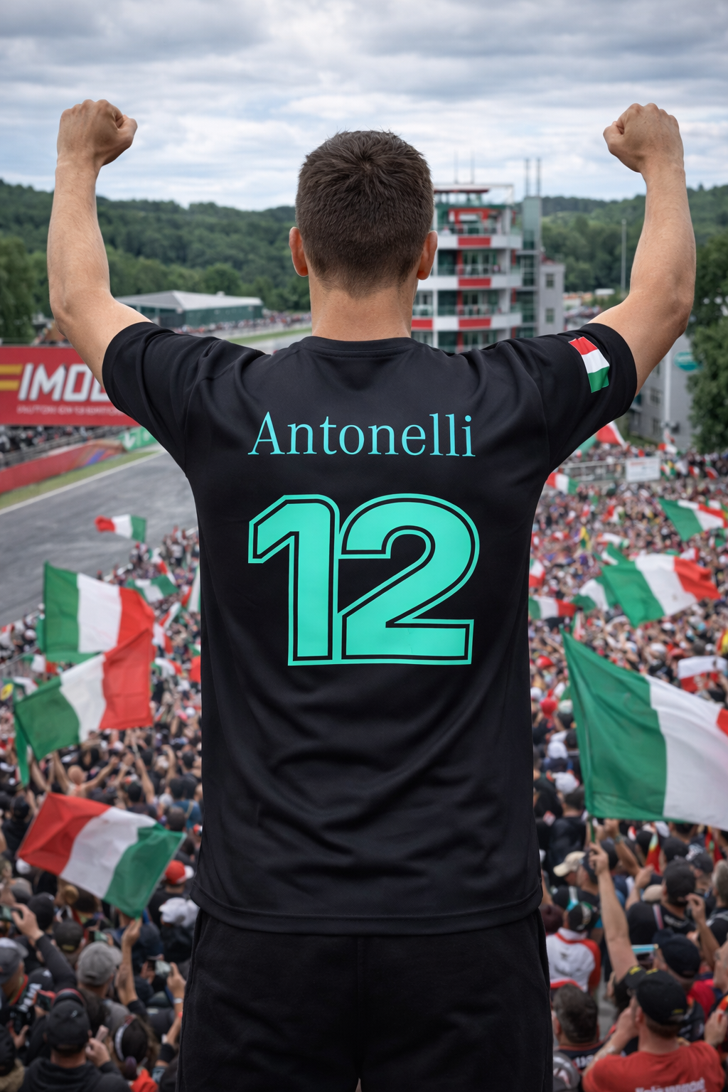 Elevate your game-day experience with this vibrant Men's Sports Jersey inspired by the Silver Arrows team. Featuring a crest with the traditional German eagle in the center, with 8 starts representing the times they have been crowned Constructors Champions. On the back, Antonelli and his #12 & his Italy flag.